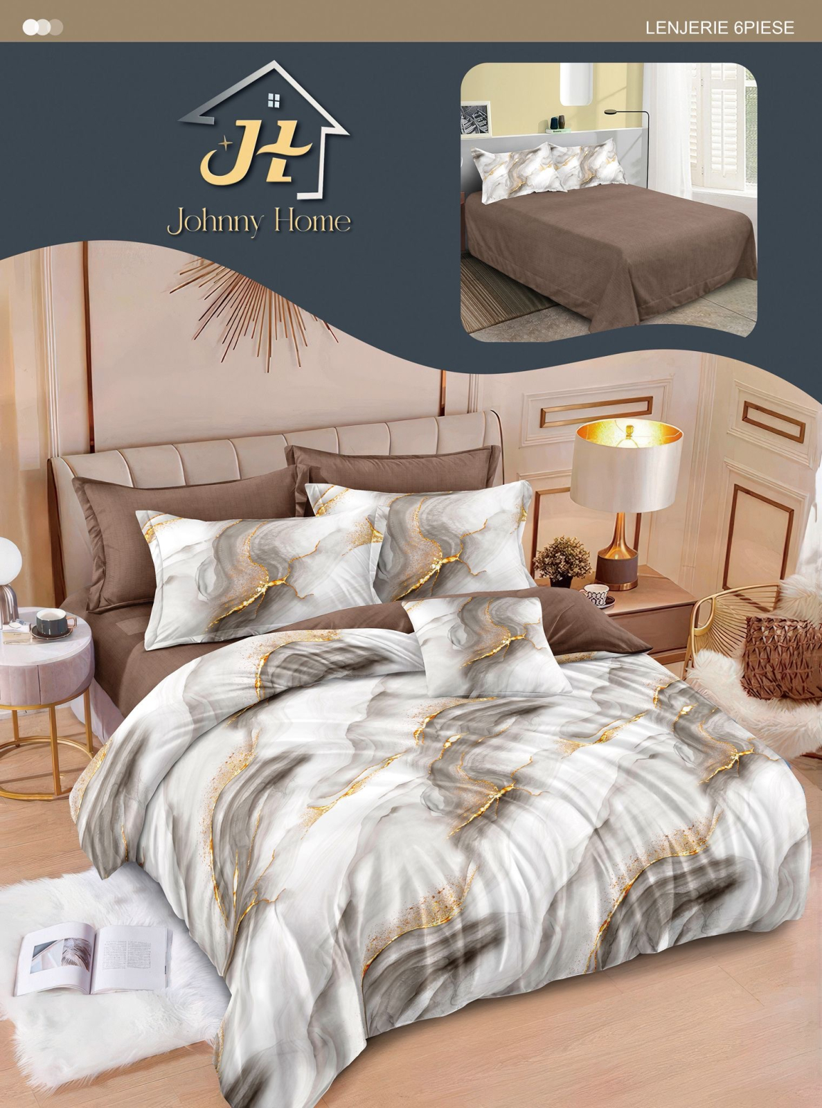 Visează la un confort desăvârșit și transformă-ți dormitorul într-un sanctuar al relaxării cu noua ta Lenjerie de pat Finet Pucioasa 6 piese, imprimeu marmură în nuanțe de gri și bej-R628. Realizată din finet de calitate superioară, recunoscut pentru textura sa catifelată și moale, această lenjerie îți va învălui nopțile în cea mai plăcută senzație. Materialul este special tratat pentru a fi pufos și rezistent, asigurându-ți un somn liniștit și odihnitor. Cu un design modern și un set generos de 6 piese, lenjeria îmbracă perfect patul și adaugă o notă de rafinament decorului tău. Alege calitatea și confortul pentru tine sau oferă un cadou de neuitat celor dragi.