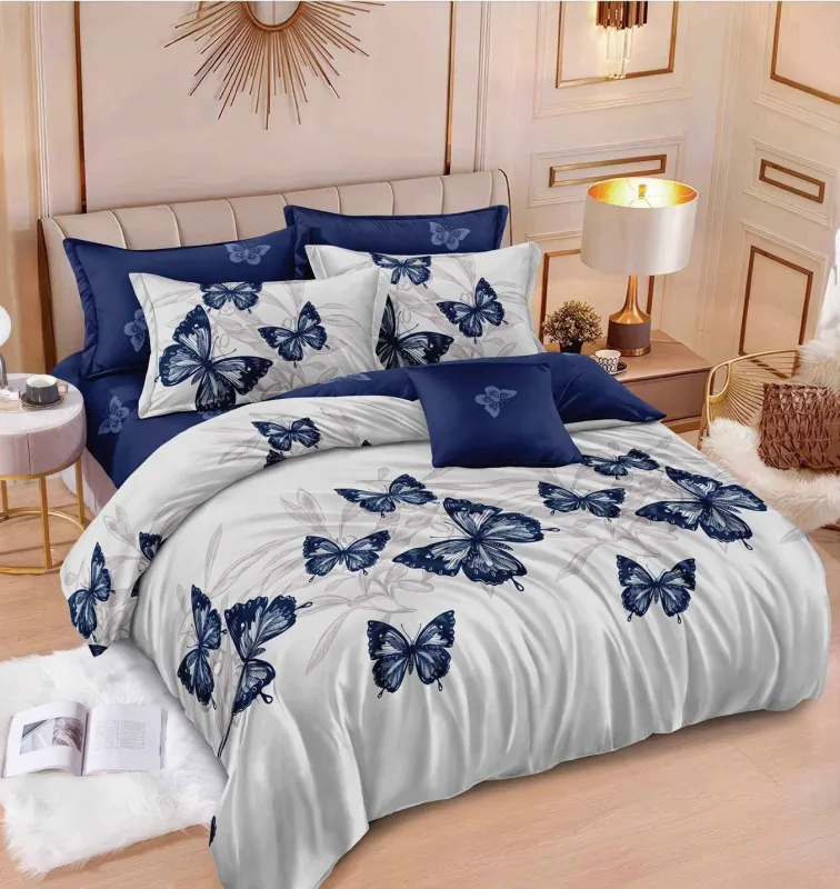 PUCIOASA Lenjerie de pat Finet Pucioasa 6 piese,Albastru Fluture-R594