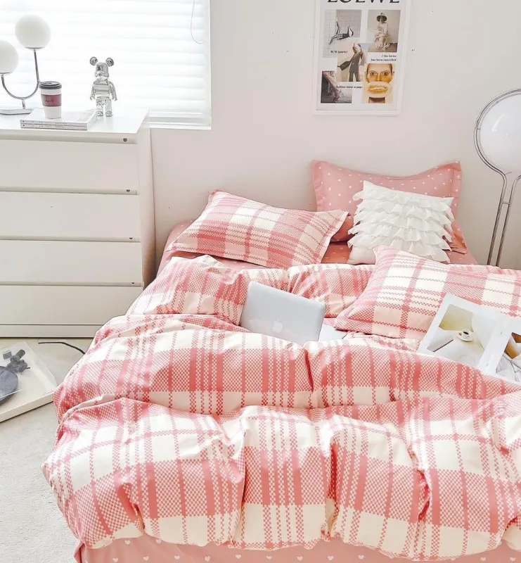 Lenjerie pentru pat dublu din finet compusa din 6 piese: