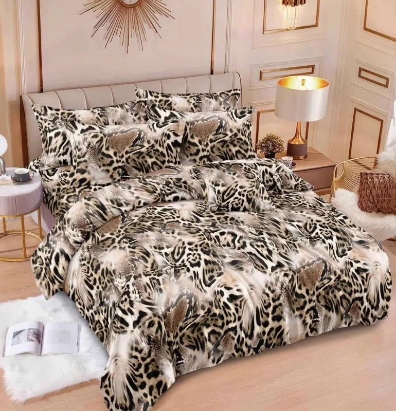 PUCIOASA Lenjerie de pat Finet Pucioasa 6 piese,Maro/Bej,LEOPARD-R601