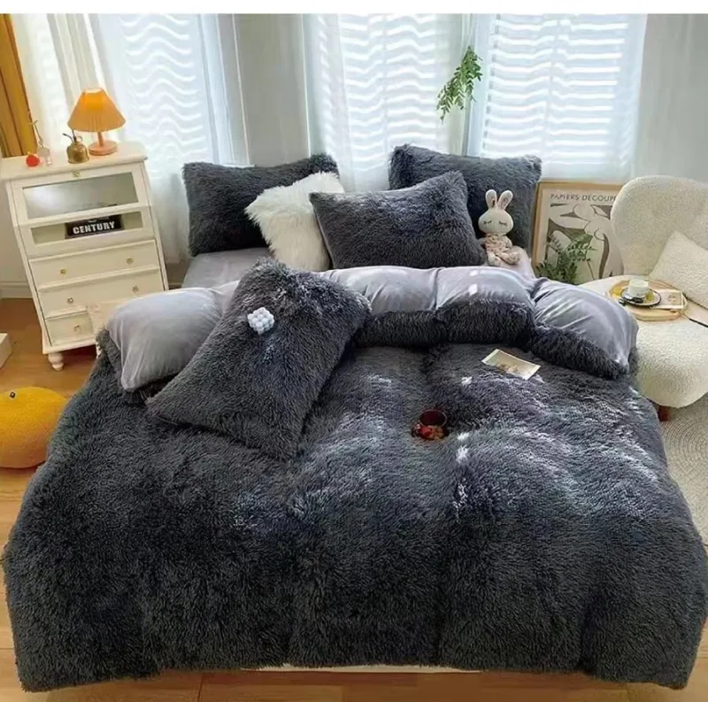 EAST COMFORT Lenjerie de pat Cocolino 4 piese Fluffy,Super pufoase,Gri deschis degrade-GB8