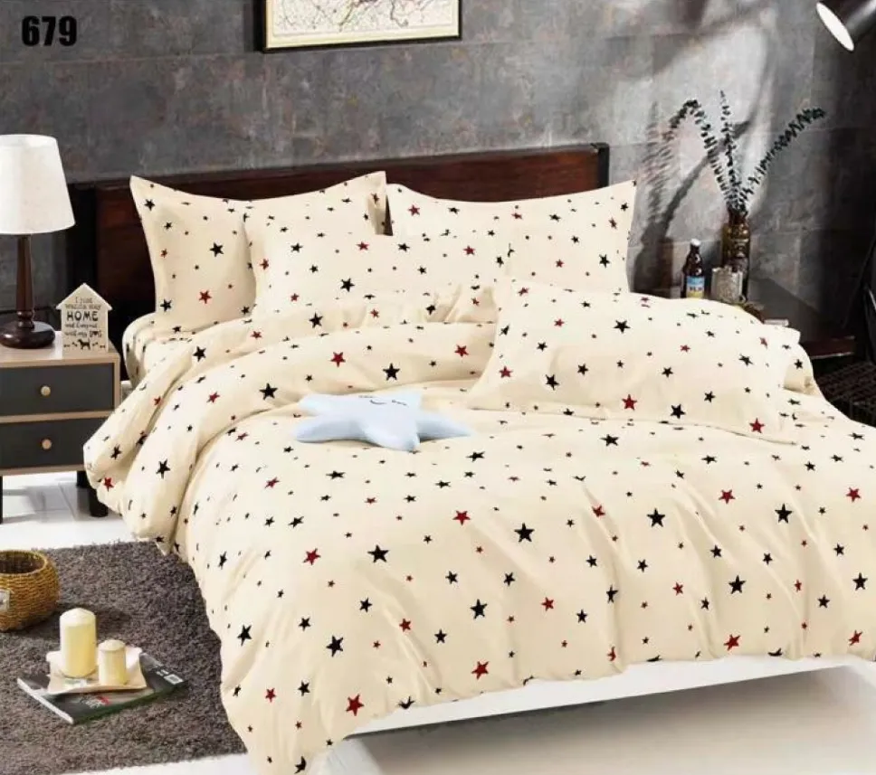 Lenjerie de pat Finet 6 piese, bej cu steluțe roșii și negre-LP679 - Descoperă confortul și rafinamentul oferite de acest set de lenjerie de pat din finet, format din 6 piese. Colecția este realizată dintr-un material textil tratat special, conferind țesăturii o senzație moale la atingere și o durabilitate remarcabilă în timp.