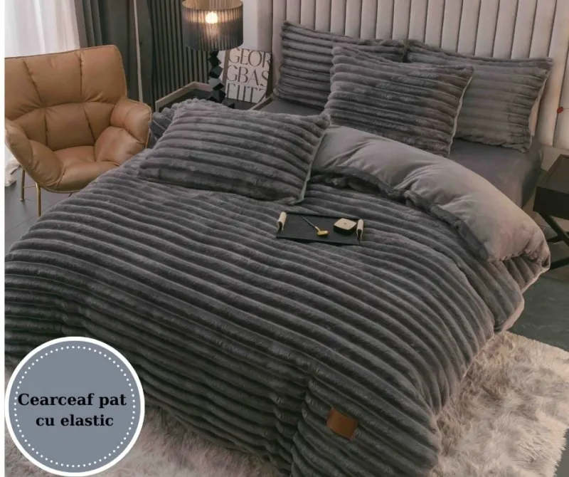 Transformă-ți dormitorul într-un sanctuar al confortului cu Lenjeria de Pat Cocolino cu Blăniță de Iepure Artificială - Set cu 4 Piese pentru Pat Dublu!