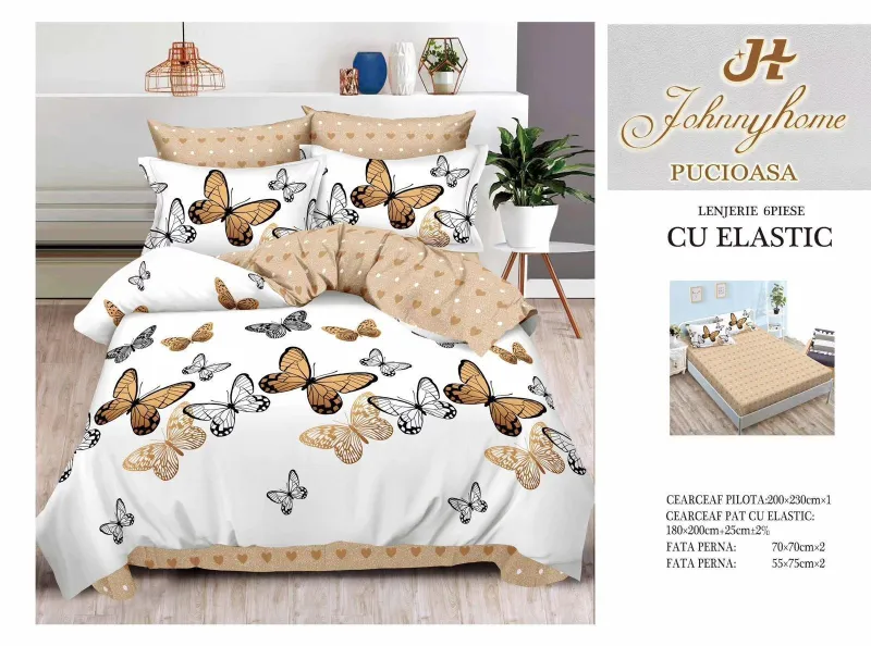 PUCIOASA Lenjerii de pat Finet 6 piese cu Elastic-T22 + CADOU