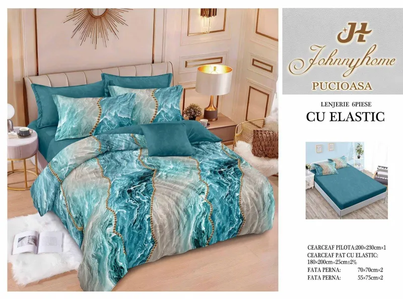 Lenjerii de pat Finet 6 piese cu Elastic-T291, descoperă confortul și rafinamentul oferite de setul de lenjerie de pat tip finet, format din 6 piese, într-o nuanță elegantă. Această colecție excepțională este realizată dintr-un bumbac tratat special, conferind tesaturii sale o senzație moale și durabilitate remarcabilă în timp. Este alegerea perfectă pentru a-ți menține patul mereu proaspăt și impecabil.