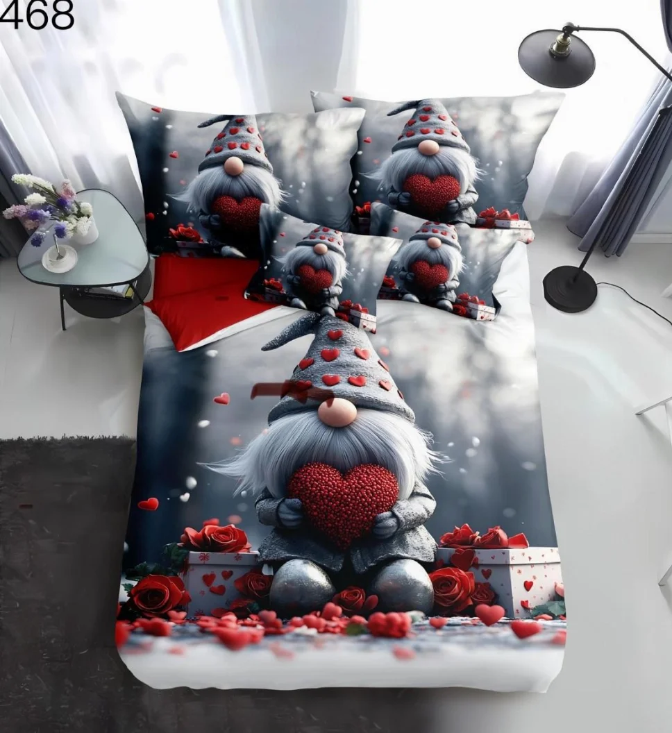 Lenjerie pentru pat dublu cu Mos Craciun din FINET cu 6 piese, acvetic cu pitici si inimioare rosii-GR468 Descoperiți modele festive cu reni, braduri de Crăciun, zăpadă și multe altele. Aceste designuri aduc un plus de magie la decorul dormitorului dvs.