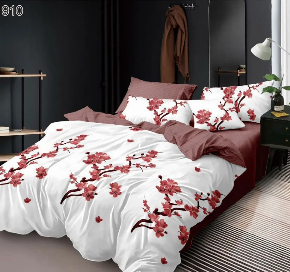Lenjerie de pat Finet 6 piese, alb cu ramuri inflorite-LP910 - Descoperă confortul și rafinamentul oferite de acest set de lenjerie de pat din finet, format din 6 piese. Colecția este realizată dintr-un material textil tratat special, conferind țesăturii o senzație moale la atingere și o durabilitate remarcabilă în timp.
