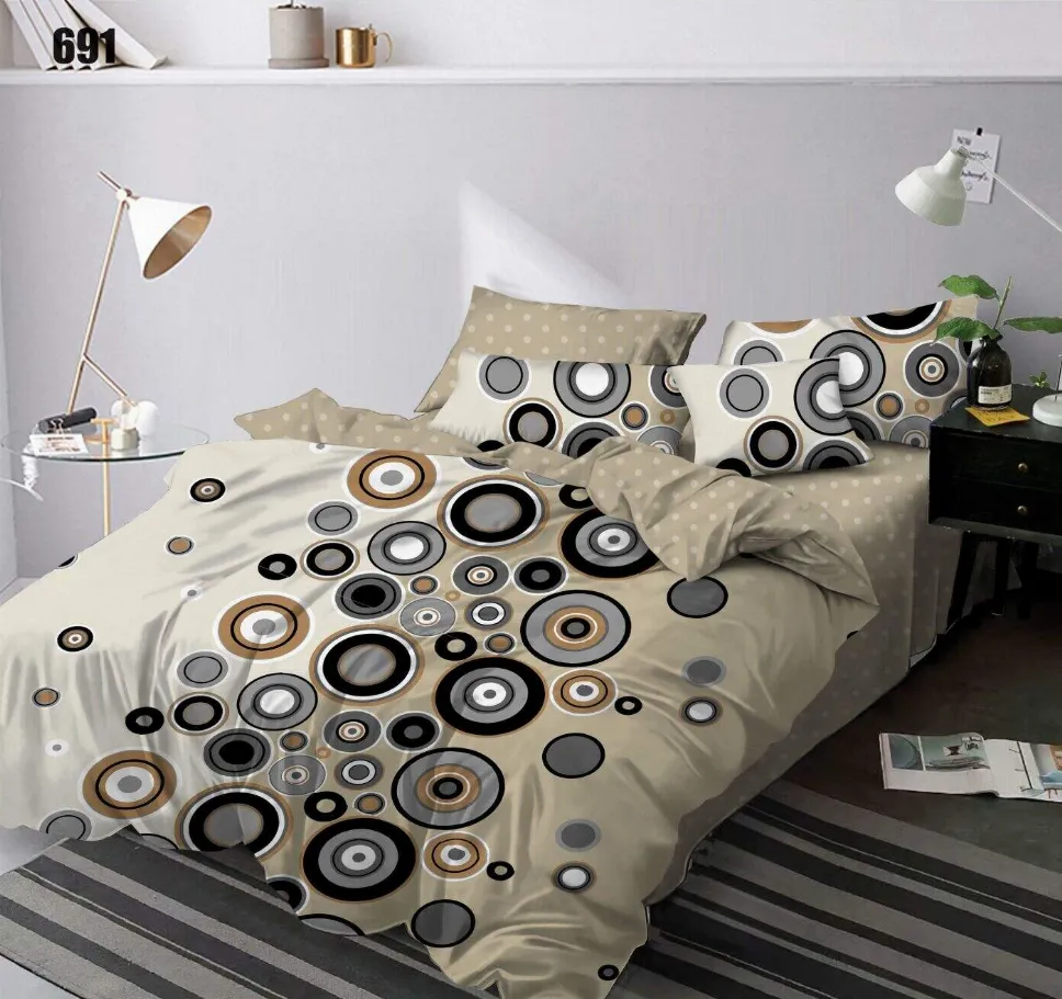 Lenjerie de pat Finet 6 piese, bej cu cercuri abstracte multicolore-LP691 - Descoperă confortul și rafinamentul oferite de acest set de lenjerie de pat din finet, format din 6 piese. Colecția este realizată dintr-un material textil tratat special, conferind țesăturii o senzație moale la atingere și o durabilitate remarcabilă în timp.