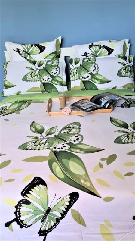 Lenjerie de pat Finet Pucioasa 6 piese,Alb/Verde cu fluturi-LP453, descoperă confortul și rafinamentul oferite de setul de lenjerie de pat tip finet, format din 6 piese, într-o nuanță elegantă. Această colecție excepțională este realizată dintr-un material textil tratat special, conferind tesaturii sale o senzație moale și durabilitate remarcabilă în timp. Este alegerea perfectă pentru a-ți menține patul mereu proaspăt și impecabil.