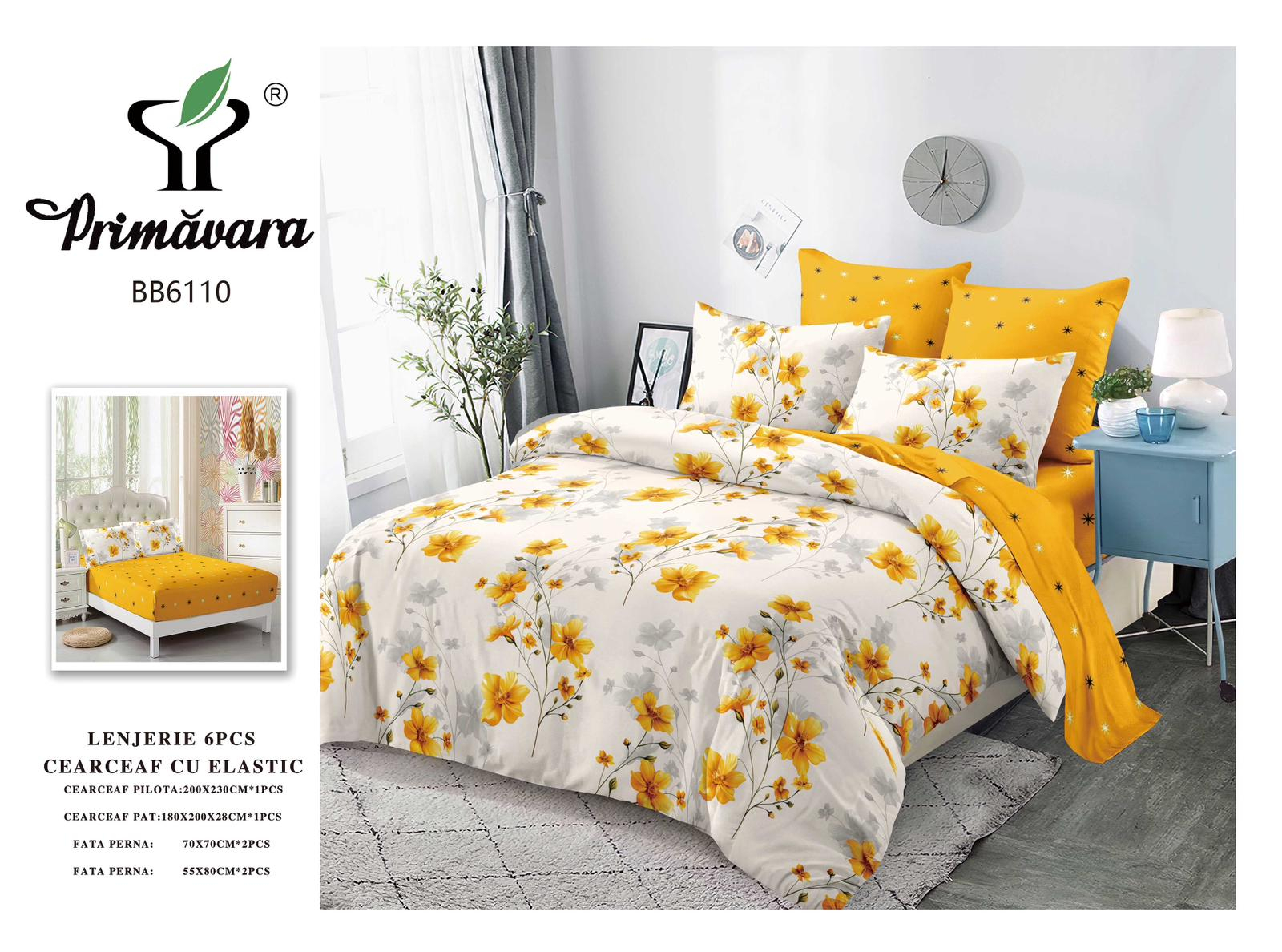 PRIMAVARA Lenjerii de pat Finet 6 piese cu imprimeu floral galben vibrant-FEL423
