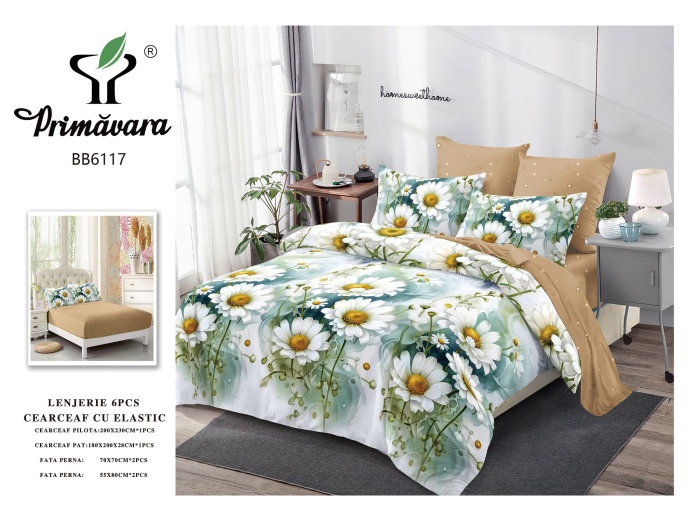 PRIMAVARA Lenjerii de pat Finet 6 piese imprimeu cu Margarete-FEL442