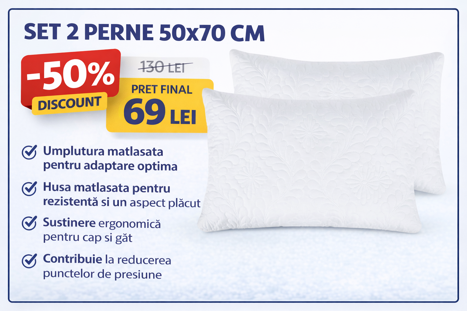 Perna Matlasata Antialergica-Husa pernei este confectionata dinmicrofibra ,matlasata cu vatelina siliconizata cu vatelina de 120 gr/mp, iar interiorul este umplut cu puf siliconizat antialergic.