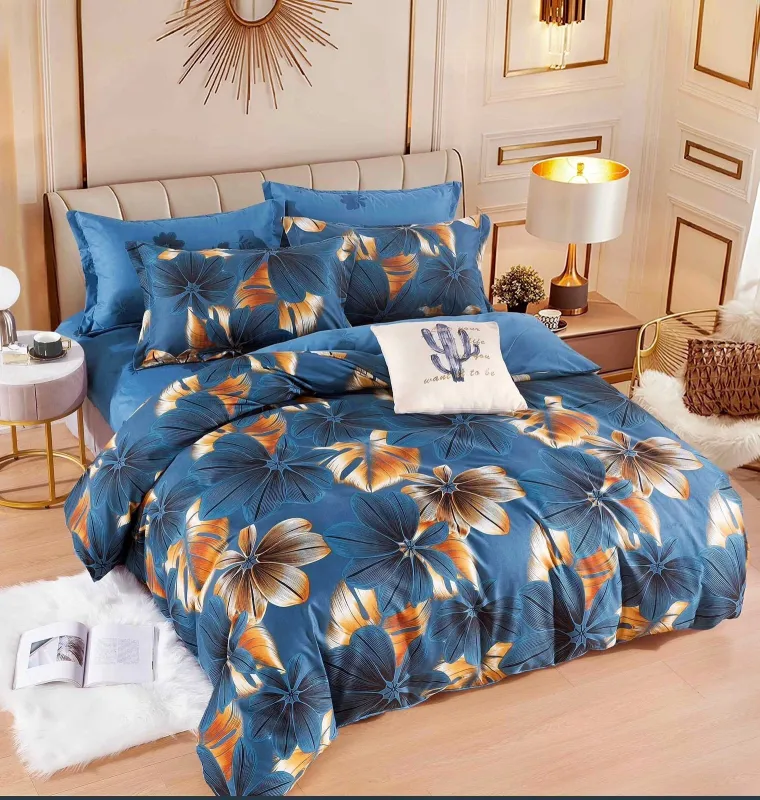 Transformă-ți dormitorul într-o oază de relaxare cu o Lenjerie de pat,6 Piese, finet,Albastru,Frunze aurii-FJ191. Realizată dintr-un material finet de calitate superioară, această lenjerie îți va învălui simțurile într-o textură moale și plăcută la atingere, asigurându-ți un somn odihnitor noapte de noapte. Materialul este special tratat pentru a-și păstra culorile vii și pentru a rezista la utilizări repetate, menținând aspectul proaspăt și îngrijit al patului tău.