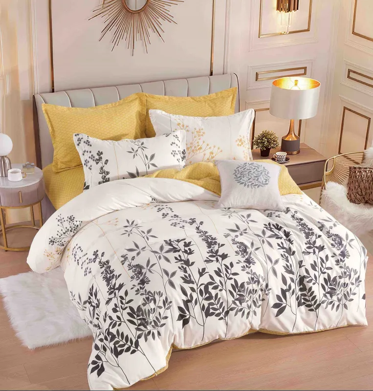 JOJO HOME Lenjerie de pat,6 Piese, finet,Crem/Galben,Iedera-FJ151