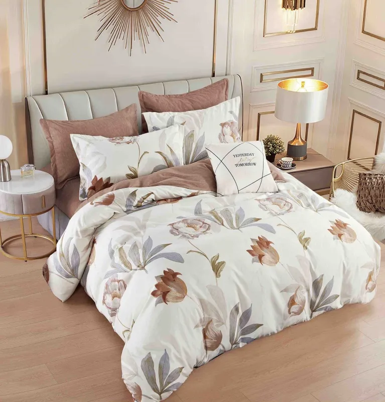 JOJO HOME Lenjerie de pat,6 Piese, finet,Crem/Maro,Lalele-FJ150