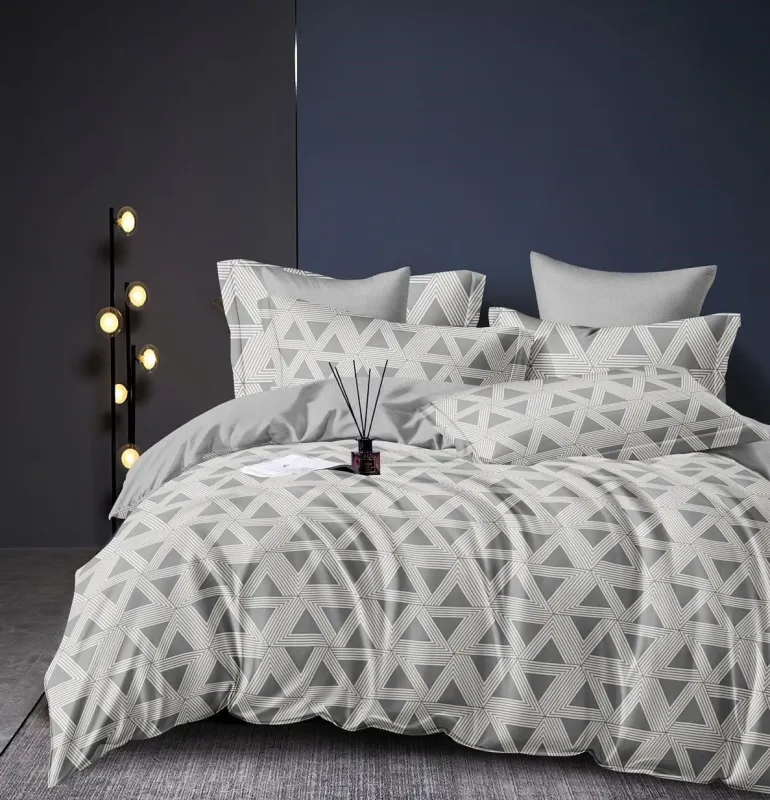 Transformă-ți dormitorul într-o oază de relaxare cu o Lenjerie de pat,6 Piese, finet,Gri cu Triunghiuri-FJ134. Realizată dintr-un material finet de calitate superioară, această lenjerie îți va învălui simțurile într-o textură moale și plăcută la atingere, asigurându-ți un somn odihnitor noapte de noapte. Materialul este special tratat pentru a-și păstra culorile vii și pentru a rezista la utilizări repetate, menținând aspectul proaspăt și îngrijit al patului tău.