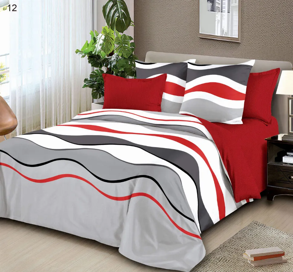 Lenjerie de pat Finet 6 piese, gri cu dungi roșii și negre-LP12 - Descoperă confortul și rafinamentul oferite de acest set de lenjerie de pat din finet, format din 6 piese. Colecția este realizată dintr-un material textil tratat special, conferind țesăturii o senzație moale la atingere și o durabilitate remarcabilă în timp.