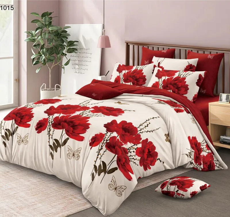Lenjerie de pat Finet 6 piese,Puciaosa,Crem/Rosu cu maci-LP1015, descoperă confortul și rafinamentul oferite de setul de lenjerie de pat tip finet, format din 6 piese, într-o nuanță elegantă. Această colecție excepțională este realizată dintr-un material textil tratat special, conferind tesaturii sale o senzație moale și durabilitate remarcabilă în timp. Este alegerea perfectă pentru a-ți menține patul mereu proaspăt și impecabil.