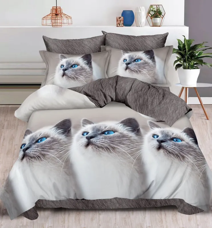 Tare mulțumită de lenjeria asta finet! Dormitorul meu arată acum altfel, mult mai primitor. Griul e superb, iar pisicuțele alea parcă dau un aer mai vesel. Materialul e moale, chiar îmi face plăcere să mă cuibăresc în el. Foarte bună alegere!