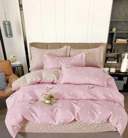E o lenjerie bună, de finet de Pucioasa. Rozălie cu bulinuțe, a schimbat camera de tot! Acu arată a sărbătoare, nu glumă. Material bun, să țină o viață!