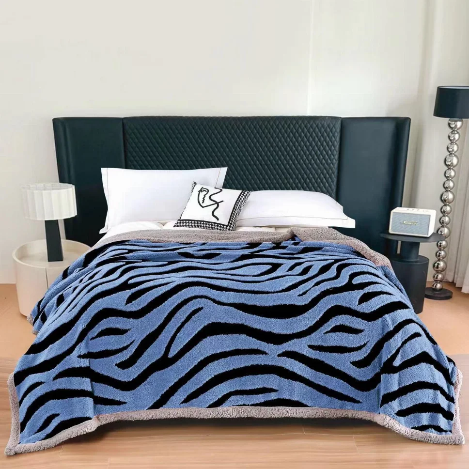 Patura Cocolino Dubla cu Blanita, albastru cu dungi negre-AB3 Pătura Cocolino cu blăniță 200x230cm  oferă căldură intensă  și moliciune plăcută  pentru un somn odihnitor și relaxare acasă. Materialul său catifelat și designul elegant  adaugă un plus de confort și stil dormitorului tău.