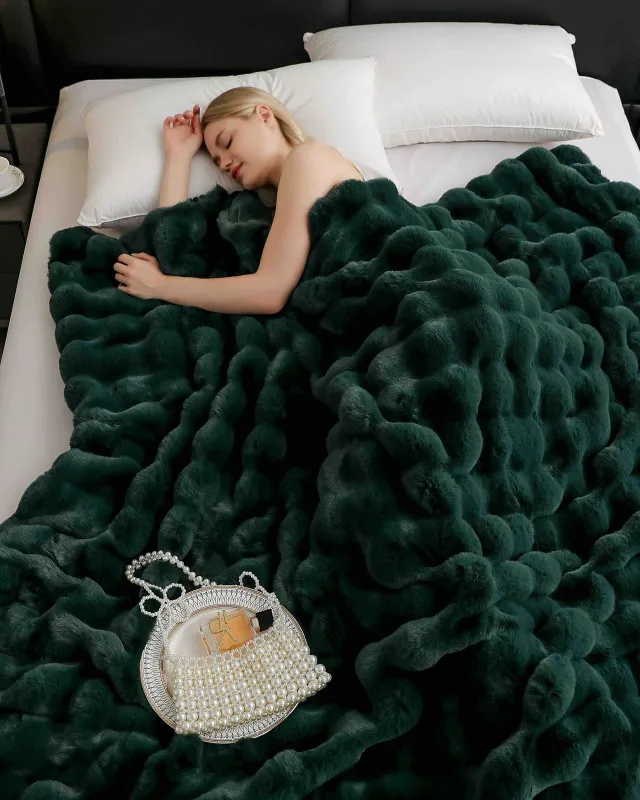 JOJO HOME Patura Cocolino Pufoasa Din Blana De Iepure, Verde-BRA06