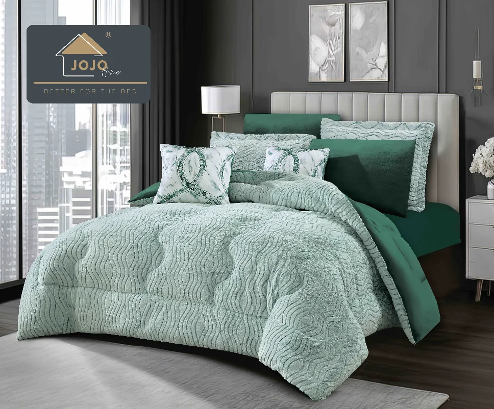 Transformă-ți nopțile în momente de răsfăț suprem cu setul ce include pilota Lenjerie cu Pilota din Blanita artificiala de iepure si Catifea cearceaf cu elastic, verde smarald cu motive discrete-PBJ25. Ideal pentru serile răcoroase, te va învălui într-o îmbrățișare caldă și pufoasă, datorită materialului Cocolino, recunoscut pentru finețea sa deosebită și textura incredibil de moale și plăcută la atingere.