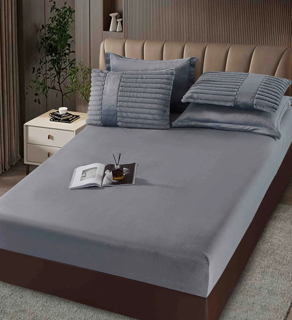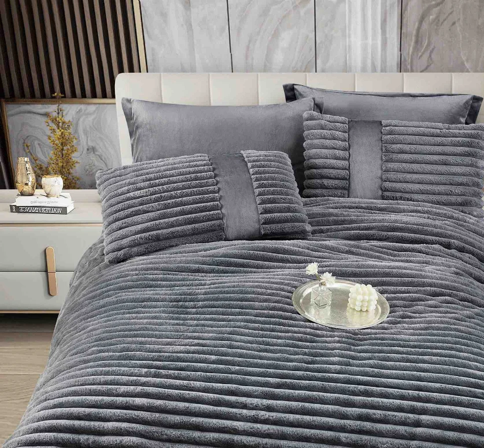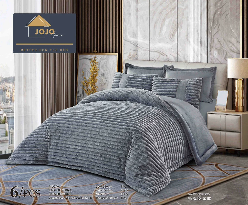 Descoperă confortul setului Lenjerie cu Pilota din Blanita artificiala de iepure si cearceaf cu elastic ,6 piese, texturat fin pe tonuri de gri-PBJ12