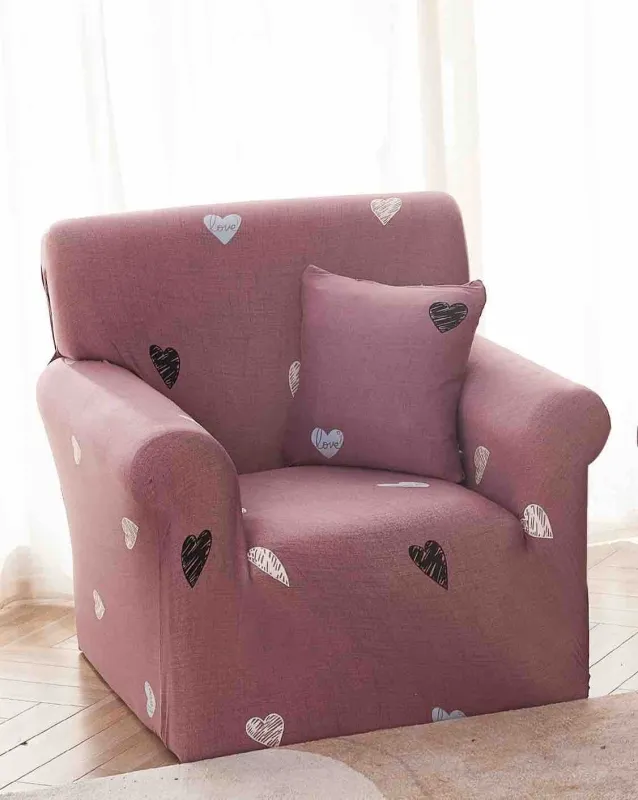 JOJO HOME Husa Elastica pentru Fotoliu cu brate,Roz cu inimioare-S31