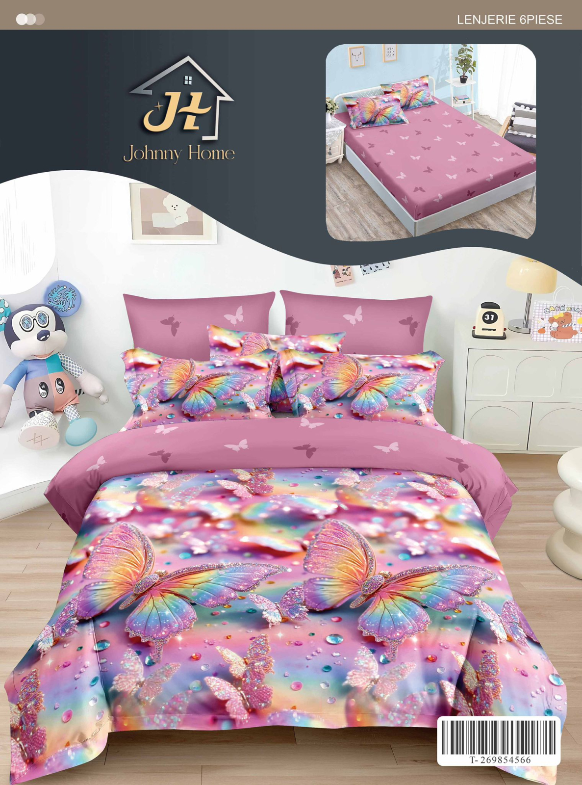 Descoperă confortul absolut cu setulLenjerii de pat Finet 6 piese cu Elastic,fluturi curcubeu si picaturi de apa-T328, special conceput pentru a-ți transforma dormitorul într-o oază de relaxare. Această lenjerie de pat din material finet, compusă din 6 piese practice, îți va îmbrăca patul perfect datorită cearceafului de pat cu elastic.